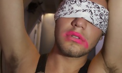 Nineteen year old blond, blue eyed Derek is chained up in the dungeon wearing nothing but a jockstrap, harness and boots. He is blindfolded and has pink lipstick smeared on his face. Daddy Lance enters from behind and gives Derek and few swats on the butt, but when he comes around to the front, he notices the lipstick. Disappointed with the cheating boy, he wipes it off with the a rag and makes sure Derek knows who's boss. Using a leather strap, Lance reddens Derek's tasty, round boy butt. Still blindfolded, Derek moans and flinches at the abuse he receives to his ass and nipples. But Lance is forgiving enough to pull out Derek's hard cock to service his unfaithful boy. When the blindfold is removed, it's time for Derek to service daddy's big, uncut cock and waiting ass. Anxious to dominate the boy, Lance puts Derek in the leather sling and worships the hairy youngster's cock while teasing his furry butt hole with two and three fingers. In an unplanned and unexpected move, daddy Lance's asshole suddenly got hungry for some hot boy cock. Derek's cock was hard as steel by this time and was more than happy to pleasure Lance in the sling. Filled with the energy and passion of youth, Derek and Lance fuck like rabbits clad in leather. Standing over Lance's shoulder, Derek spatters his cum all over Lance's hairy chest. But Lance doesn't take long to shoot his load, thrashing and convulsing in ecstasy with his eyes literally rolling back into his head.