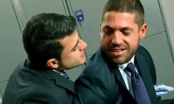 Its break time in the Menatplay Office and Harry Louis takes a moment to read the papers and catch up on the news, but his concentration is soon broken when Axel Brooks walks into the staff room and starts stripping out of his clothes to change into his business suit right in front of him. As soon as Axel's t-shirt comes off, Harry's attention is drawn to his hairy, muscular body, peeking over the newspaper which he also uses to hide the growing bulge in his trousers. And when he thinks Axel isn't looking, he cheekily takes out his monster cock and starts stroking it behind the newspaper. But it seems that Axel does notice, and he wants in on the dick action as he pulls the newspaper away and grabs Harry's cock, getting down on his knees to swallow it whole before receiving the pounding of his life. And as if that wasn't enough he gets absolutely showered in Harry's hot cum. This is one explosive pairing that you do not want to miss!