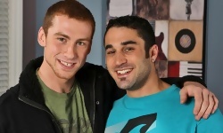 Samuel O’Toole has, among others, an eccentric artist friend who comes by from time to time peddling his paintings. Samuel likes his paintings, but he really likes his cock. Connor Maguire is not yr typical Bohemian painter. Cultured in Europe’s finer schools of technique, he has come to the states to be free from rules and just express himself. Self made, he doesn’t do it for the money, so when Samuel shows a keen interest in his art but comes up short financially, Connor works an agreement that will let Sammy have his cake and fuck it in the ass too.Sammy, on cue, unzips Connor’s pants and pulls out his dick, immediately taking as much of the thick shaft down his throat as he can. Connor winces from the sweet ecstasy of it, and shimmies out of his pants altogether. Trading places, he begins to get Sammy good and hard, and once this is achieved, Sammy enters Connor from behind and begins to fuck like his paintings depended on it. Connor shows he can express himself in more than one medium, riding Sammy and getting more hard by the minute, cumming on the sofa as Sammy pulls out and paints his own abstract glob of art. Enjoy!