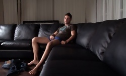 Etienne drops his pants and pulls out his throbbing cock as he grins at the camera. He takes a second to fiddle with his new piercing then stuffs two fingers up his ass before blowing a massive load all over his t-shirt which he laps up like a pro. Nice!