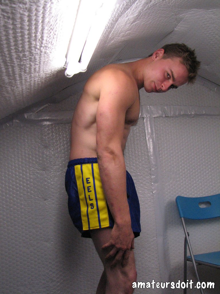 Ed oiled himself up and then proceeded to jerk his uncut piece of meat off until he shot his load of semen!