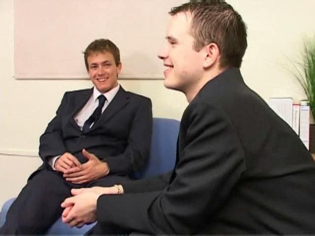 Two suited and booted (but not for long) gorgeous guys chatting in reception, but their shyness soon dissipates when the two likeminded sweeties become embroiled in a sexual liaison of arsehole rimming, deep throated blow jobs and smooth back door loving - which is totally bareback.