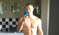 But he still gave us a strip tease, shows-off some of his push-up skills, then he whips his cock with a frenzy.