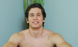Leo Serra is a sexy 19 year old college student who spends most of his time studying and working out. He wants to be a doctor, so he definitely has a lot on his mind. He admits, though, that especially in the locker room his thoughts turn to other things. Leo has some locker room fantasies that we would all love to see happen in reality! After explaining some of his fantasies for us, he strips down to reveal a very nice bod. We love his pecs especially! Leo has a very athletic body, and he puts every muscle to work as he jerks off. His thick uncut cock gets a work-out. Leo seems extremely passionate and pleasure-seeking as he jerks it. We love seeing every part of his body move in rythmic motion. Leo begins standing up, and then sits down to get more comfortable. Soon, however, he is on the floor, fully reclined. As he works up a bit of a sweat, he pounds his meat until he cums a very nice load! We think you will like Leo and want to see more.