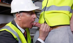 This mature buildings inspector and a young construction worker was caught fooling around on CCTV when they thought no one was going to see them - guess they forgot about the CCTV installed a couple of days earlier to catch thieves.