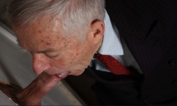 We love seeing a hot mature businessman in his suit get on his knees and work a stiff cock through the glory hole and thats exactly what daddy Henry does here, he gets on his knees to please!
