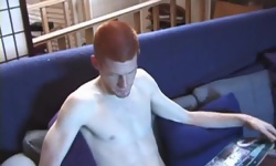 As young Tristian strips naked, his rock hard dick pops out and the cute skater boy starts stroking. He gives his cock a good workout and then shoots his cum load onto his face and skateboard.