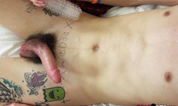 Ivan Thundero is one of those boys you might see in the street and immediately be in love. This cute alternative emo boy has some interesting ink and some piercings too, but the best thing about him is his wild cock bush and the impressive shaft hanging from him. He strokes that 8" boner in his hand, and a toy, before finally unloading his balls!