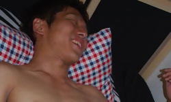 Getting a nice view of Makoto, we see why he's so happy; his mouth is full of Khan. It doesn't take long for Khan to put Makoto on his back, putting his legs over his head. Tenderly, the top lubes up his partner's hole and "strokes and pokes." Going in with two, then three fingers, seems like Makoto is more than happy for the "company." Khan makes sure his fat cock will fit; he then slides in and starts pumping from the get-go. The boys kiss and moan; guess Khan knows "his hole." On all fours, Makoto tugs at himself while Khan thrusts from behind, feverishly. Watching these boys' bodies as they fuck is amazing, their bodies tense and release in unison. Khan rolls Makoto back onto his own lap and pounds from below; this can't be Khan's first time "in" Makoto's apartment, or his last. Together, they masturbate and fondle each other; a very sexy smile and giggle is shared between the two before they cum. Khan sets the bar high, with a huge load that splashes up on Makoto's torso. With a bit more tugging, Makoto follows with some healthy "streaming" of his own.