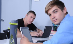 It's a dream come true for Connor Kline - he's locked in a study room with Johnny Rapid. To get the party started Connor turns on some porn and he's the star! Before long Johnny is bent over getting fucked by Connor's big dick!