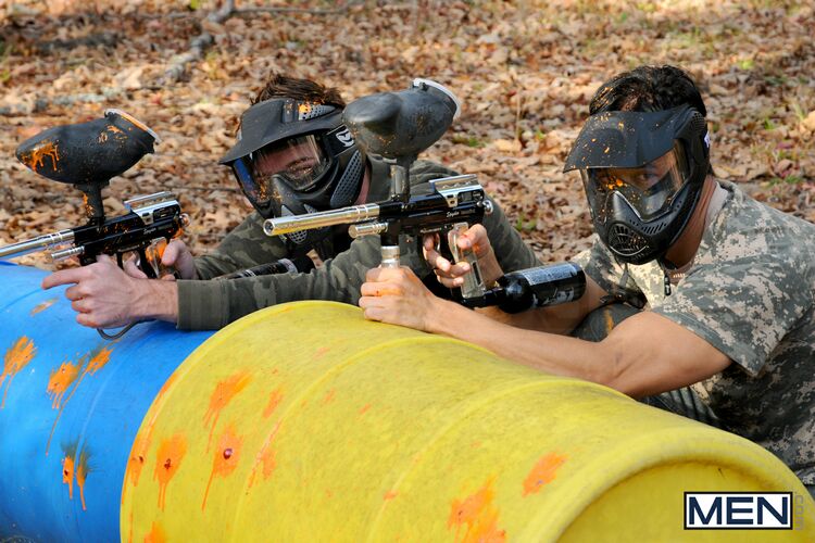 Who would expect to join a Paintball game only to end up naked, covered in leaves, dirt and cum!