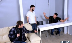 JOhnny Rapid shows up 3 hours late to shoot a scene and unfortunately gives jittery Cooper Reed a reason to leave. Without a scene partner to fuck Johnny Rapid, Josh Long offers his dick to save the day. It all works out in the end as sexy Josh slams Johnny hard and deep until both guys shoot big loads!