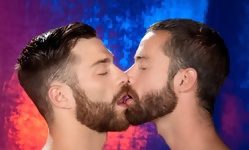 Seth Fisher is a handsome, hairy, bearded athletic guy whose sexy mouth and hot hole are ready for a challenge. Length plus girth combined give Tommy Defendi a massive organ that will challenge any cocksucker, but Seth knows exactly the right combination of spit, angle and determination to make Tommy groan and his supersized cock vanish. Seth lies on his back on a bench with his head and neck hanging over the edge, so Tommy can fuck his face. Tommy’s cock disappears deep into Seth’s throat. After Tommy loosens up Seth’s ass with his tongue, Seth lowers himself onto Tommy’s cock. Seth raises his body rapidly up and down, then he rests while Tommy’s assails his butt from beneath. Tommy wants more control so they switch to doggy position so he can really slam Seth’s ass. Their loud groans signal the cumming of their hefty loads.