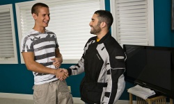 When Sammy arrives, Jacques is eager to get started. They lay on Jacques bed and get down to practicing the life-saving skills Jacques will need to know. First is chest compression. Jacques likes the way Samuel touches his chest and nipples. They switch so Jacques can give it a go. Nervous around such a hunk like Sammy, Jacques timidly attempts performing mouth to mouth. He then finds an excuse to feel all over Samuel’s chest and abs, saying he’s checking for injuries, as one would on an actual injury victim. But Sammy knows exactly what’s going on, and he’s not afraid to make a few moves of his own. He begins rubbing Jacques inner thigh, eventually pulling out Jacques’s hardening dick. They enjoy each other’s fat cocks before Sammy has Jacques reposition to take his bulging erection. Watch Sammy fuck hot, young Jacques in this study session where resuscitation is the last thing on their minds.