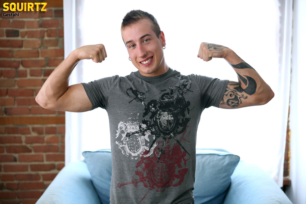 It was over two years ago when Gestahl thrilled us with the cumshot that blasted him in the face. This time he's back and naturally there have been some changes. First of all, Gestahl is now a fully licensed truck driver so he pretty much knows where his career is heading. Looking at him right away you can see that he's put on about 20 or more pounds of muscle all over his body. And then there are the tattoos and the piercings. These body modifications are pretty much all over the place but perhaps the most controversial is the piercing right through the top of his dick. Now he claims that this has a profoundly positive impact with his sex partners but we are wondering how this new hole in his dick will affect his cumshots?