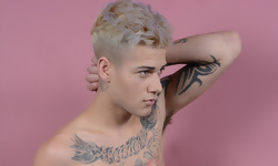 He’s not going to be everyone’s idea of the perfect man, but if you like your boys on the rough side with a somewhat unpredictable edge then young Mickey Taylor is almost certainly going to catch your eye. Indeed, with his peroxide blond hair and his array of unusual tattoos – including one that runs along the stem of his dick, ouch! – he’s not exactly the sort of character that’s going to blend into the background. Far from it, in fact. As his initial interview infers, he’s a natural-born exhibitionist – the perfect quality for anyone who wants to take their clothes off and fuck around on camera.