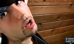 Alpha thug Flaco is gonna make you eat his gangsta cock. He knows how to teach the bitches and he knows what they want... they want to eat his dick and suck his juice down their throat. Watch him as he works his slippery cock and builds up to a cum load, talking horny shit and getting himself all worked up.