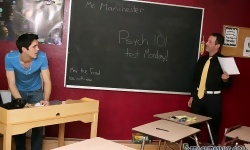 Aiden Summers is a very naughty boy, and naughty boys definitely need to be taught a hard lesson! When Mike Manchester catches his student rummaging around his desk, he decides that the boy needs a different kind of lesson. Aiden Summers doesn't seem too concerned though, quickly getting the muscled hunks cock out and sucking it down. Of course, Mike Manchester needs more than a mouth, and Aiden smooth little ass gets a whipping before getting rammed full of that daddy cock. Check out the leaping cum load the boys takes all over his face at the end!