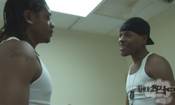 Brooklyn, dat's where a brotha is from and he all about da bizniss of taking some big ass dick up his ass. Yo Romeo was just waiting for his laundry to be done, but Brooklyn came in and got his dick all tingly n shit, so Romeo gets down with a brotha. They can't keep their hands off each other, already gettin it on in the elevator, but tha real action starts back at tha crib with some mean dickin down. Romeo rides dat thug and busts a big fat nut all over his face.