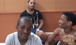 Ciroc Star, Justin Kace and Kream Jackson are chillin and horny. They strip down for a hot sweaty session together. Kream starts off on his knees, taking Ciroc and Justin's dick to get them hard. Justin kneels down to get a taste of Ciroc's fat dick too while Kream sucks his dick and licks his hole. Justin and Kream take turns riding Ciroc's dick until he can't take it anymore. Kream busts his nut all over himself and Ciroc soon follows, covering him with all that cum!