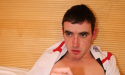 After doing a duo shoot Billy needed no time at all before he was feeling horny again and ready to do a solo. This lad is originally from Bristol, but is now living in South Wales. He was wearing his best scally gear – Nike trainers, black trackie bottoms, white England football top, black Everlast hoody and white baseball cap. He was soon feeling down his trackie bottoms and playing with his nice, big dick. This chav lad stroked his cock up and down, slowly at first but building up speed as he got harder and harder. Although he’s mainly a top, Billy had no problems taking a dildo and fucking his tight man-hole. He continued to jerk off and he also took off one of his trainers and gave it a good sniffing, whilst the dildo was still stuck inside him. After some further wanking this fit lad was ready to shoot his sticky load all over his chest. Fortunately Billy was hungry, so he picked up some of his warm cum in his fingers and put it in his mouth and swallowed it up. Nice one mate!