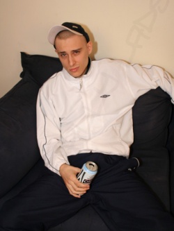 Terry is a rudeboi from the streets of London. Unlike many scallies he has perfect skin and well fit toned body. He works an escort and loves to give pleasure to men of all ages (members can request his contact details!!). He has not done much porn work before but he was confident during this shoot. For this shoot Terry wore navy Fila trackie bottoms, Nike trainers, green Lacoste polo shirt, white Umbro trackie top and Fila baseball cap. From the start he had that mean moody look that defines chav lads! He started by rubbing his hands up and down his body and felling his nipples before working down and playing with his cock inside those trackie bottoms. Eventually items of scally gear came off to reveal that slim smooth toned body. When his pants finally came down it revealed a gorgeous perfectly formed 8-inch uncut cock.