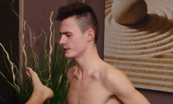 For our first Wank Party of 2014 we have a very good group of guys, Tomas Kavur, Milan Neoral, Simon Beber and Honza Onus. Simon and Honza are both working in a bar, where the uniform is just to be in underwear. Milan and Tomas arrive for a drink and are greeted by the barmen who kiss them. They all have a shot and then Simon and Honza entertain the others by dancing on the stage, very briefly. We then find them again as then are in Milan's flat. They sit and begin to kiss, quickly losing their tee-shirts. As the kiss their hands reach to grope each other. Then the open their pants and out come the cocks. Milan starts wanking on Simon's dick and Honza wanks Tomas. Then Milan removes his pants, followed by Tomas. Simon is quick to take Milan's dick in his mouth and Tomas feeds his to Honza. Then Simon and Honza remove their pants too, so now all four are naked and hard.